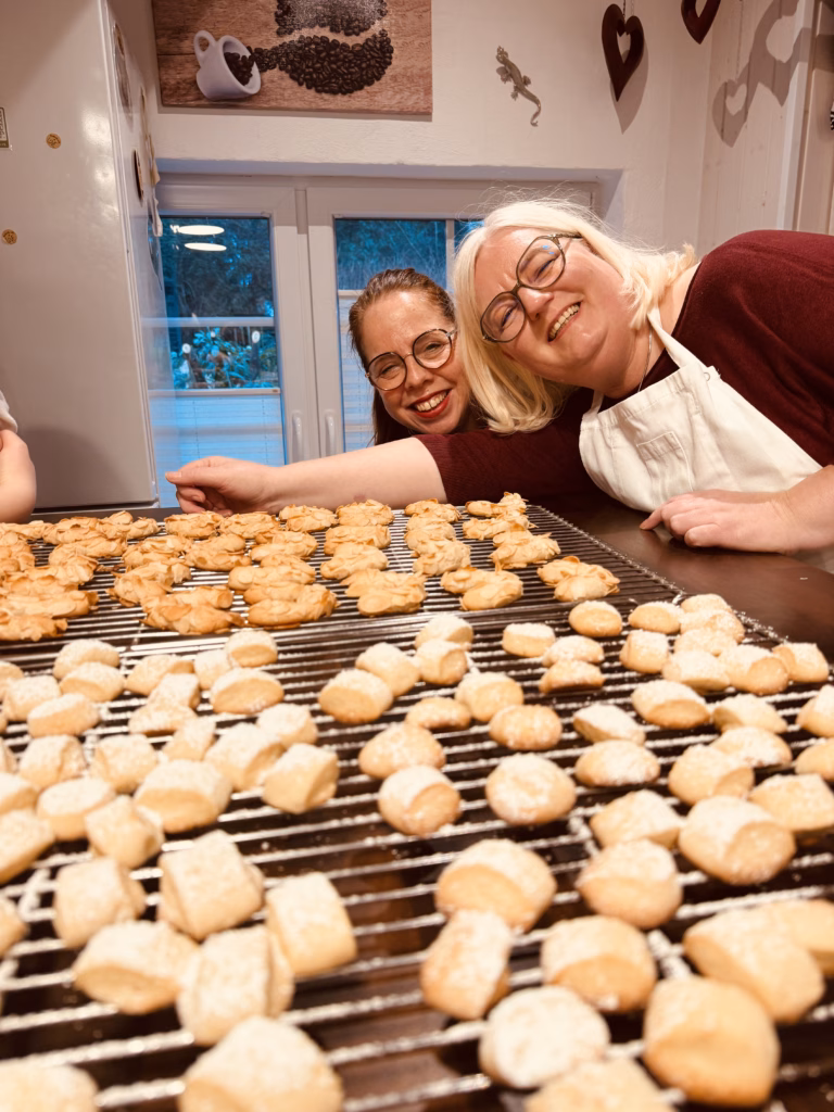 Jedes Jahr gibt es von mir noch zwei „Überraschungs-Weihnachtsgebäcke“, die wir gemeinsam backen. Sei gespannt. Am Ende des Backkurses nimmst Du Deine selbstgebackenen Kekse und Weihnachtsgebäcke mit nach Hause und kannst diese mit Deinen Lieben oder alleine „wegknuspern“. Verlebe eine wundervolle Zeit in meiner Backstube während des Backkurses und lass Dich vom Duft der Vorweihnachtszeit verzaubern.